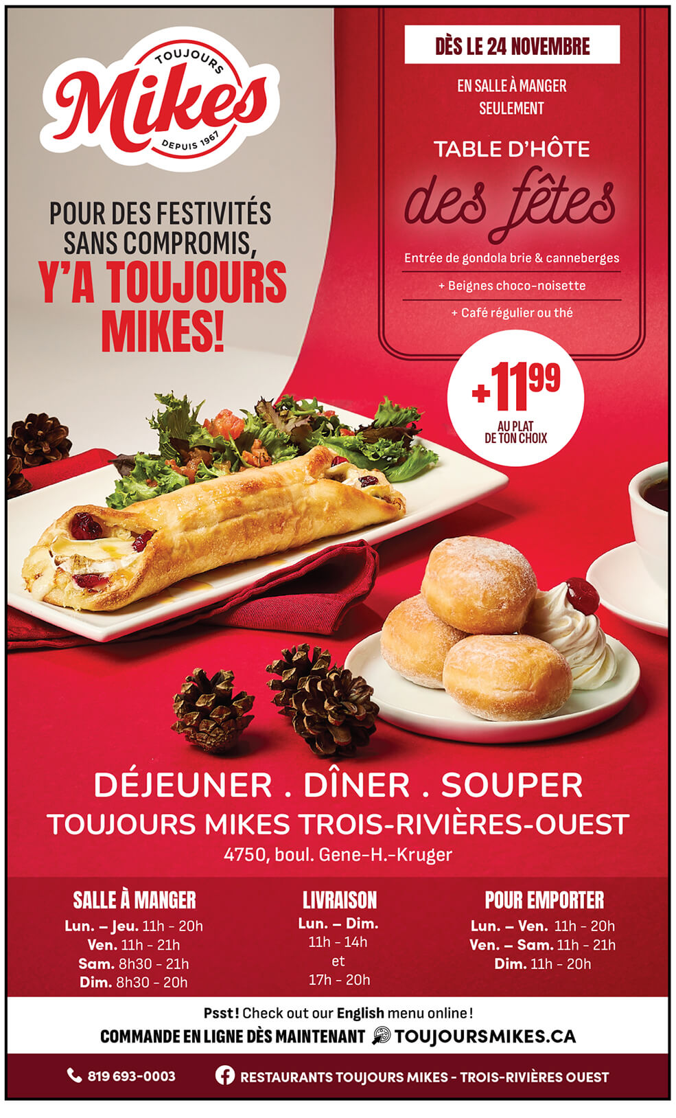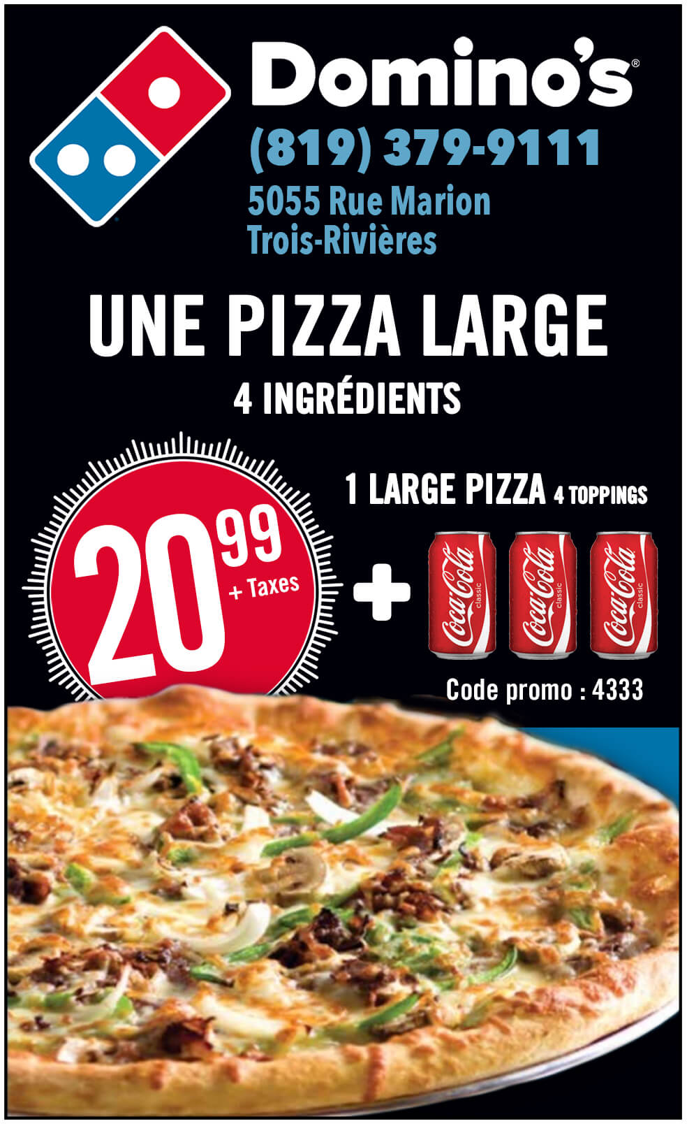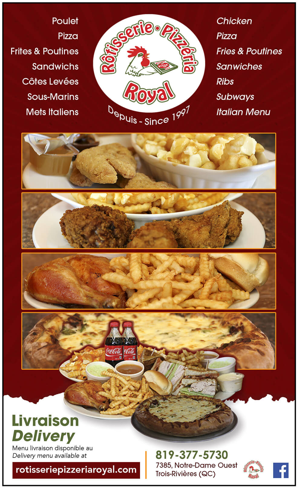 Mikes Details → Pizzéria 67 Details → Archibald Microbrasserie Details → Rôtisserie Pizzeria Royal Details → Pizza Domino’s Details → Le Manoir du Spaghetti Details →